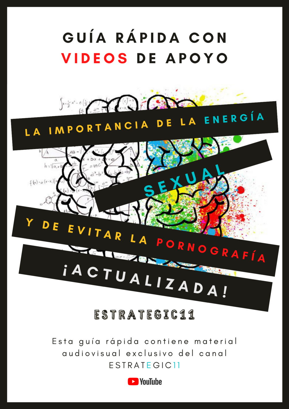 Esta guía rápida y gratuita contiene material audiovisual exclusivo del canal ESTRATEGIC11 donde se exponen aspectos más allá del ámbito de la medicina tradicional para el máximo aprovechamiento de la energía vital a través de una exploración de los efectos que provoca la pornografía y la pérdida desmesurada de energía sexual (semen) en las 4 dimensiones del sistema humano.